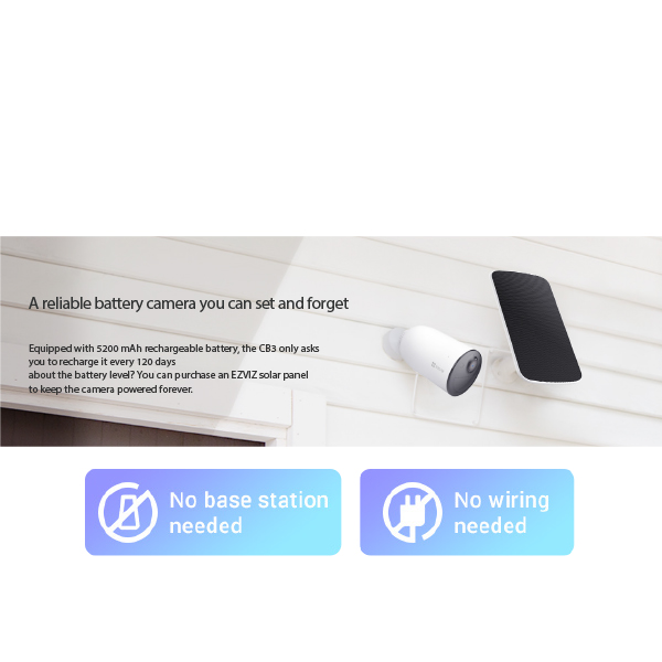 - Works with EZVIZ Solar Panel² for Battery Charging