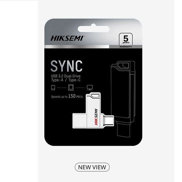 The Hiksemi HS-USB-SYNC is a mini USB 3.2 Flash Sync drive featuring a dual interface, including Type-C. It supports OTG functions for Android phones, tablets, and PCs. Available in capacities up to 256GB, it offers fast transmission speeds with a maximum read speed of 150MB/s and a maximum write speed of 45MB/s.