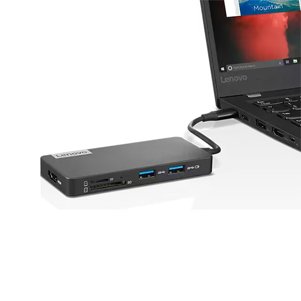 Travel - Ready Productivity. One-stop travel docking is finally here. Connect and charge new and legacy devices wherever you happen to be. Sleek and compact, the Lenovo USB-C 7-in-1 Hub fits unlimited productivity inside your everyday bag.