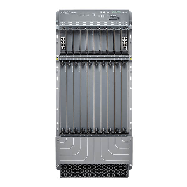 The carrier-grade MX2008 Universal Routing Platform helps service providers and cloud operators address long-term traffic, subscriber, and services growth. The powerful SDN-enabled platform provides high density, capacity, and throughput in only 24 rack units.