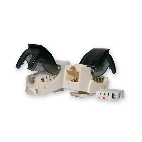 Rosenberger HDCS® CAT.6 keystone jacks are components of the HDCS® Cabling system. These jacks share the same mounting features, apply to outlet faceplate, surface mounting box and modular patch panel. Rosenberger CAT6A shielded keystone jack is a part of the HDCS® cabling system, such jack utilizes same mounting feature, applicable to outlet faceplate, surface mounting box and modular patch panels. It guarantees 500MHz bandwidth for high grade 10Gbps transmission application, and compatible backwards with all current Ethernet applications.
