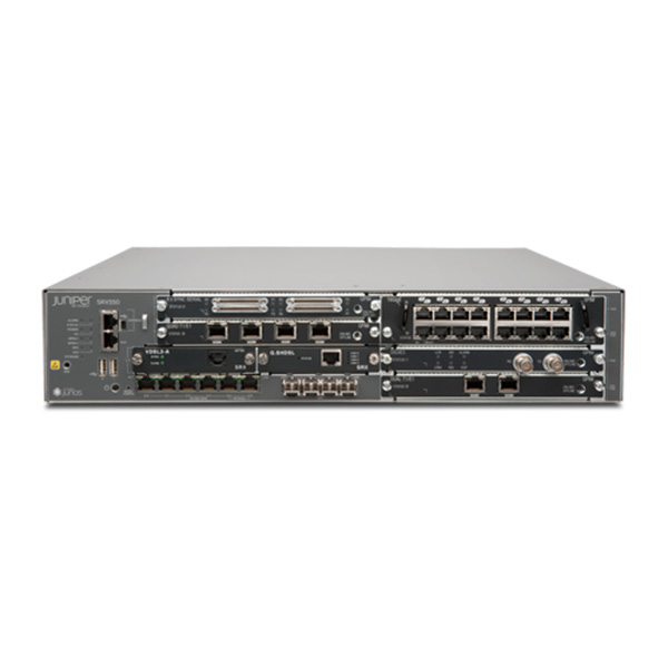 The SRX550 Firewall is an all-in-one solution that consolidates security, routing, switching, and WAN connectivity into a 2 U footprint. The highly flexible device delivers next-generation security, SD-WAN support, and enterprise-class networking to midsized and large branch locations.