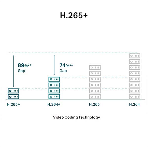 - H.265+: Without using any extra bandwidth, your cameras transmit compressed crystal-clear video to save disk space, ease network loads, and reduce monitoring costs without sacrificing image quality.